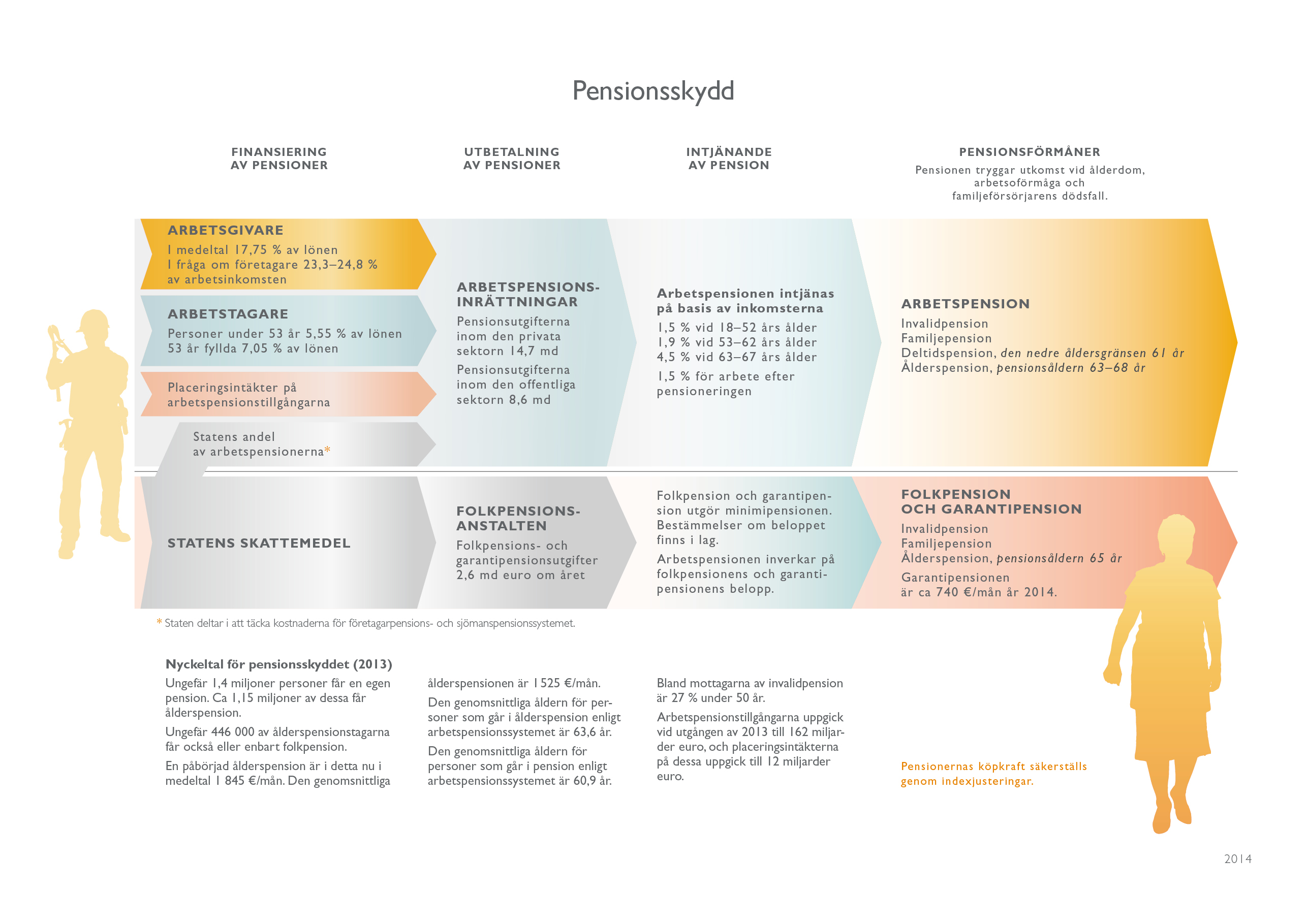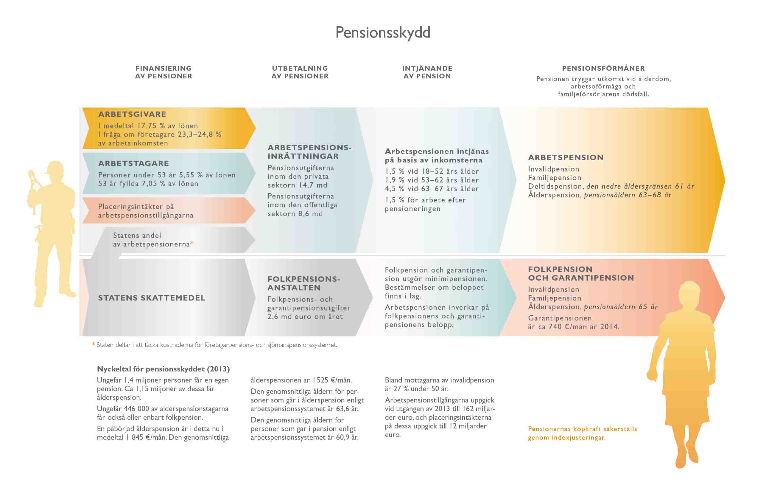 Pensionsskyddet består av arbetspension, folkpension och garantipension