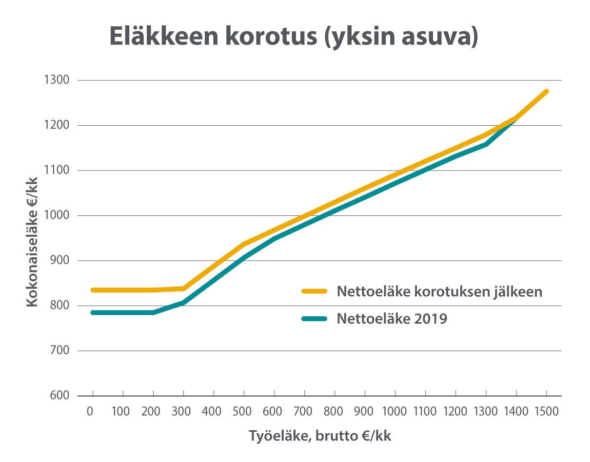 Pääministeri Antti Rinteen hallituksen ohjelmassa on päätetty käyttää 183 miljoonaa euroa vuodessa pienimpien eläkkeiden korottamiseen. Hallitusohjelman mukaan korotus kohdistuisi noin 1000 euron kuukausieläkkeeseen saakka. Hallituksen esitysluonnoksen mukaan, noin 609 000 eläkeläistä tulisi saamaan pienen korotuksen eläkkeeseensä.