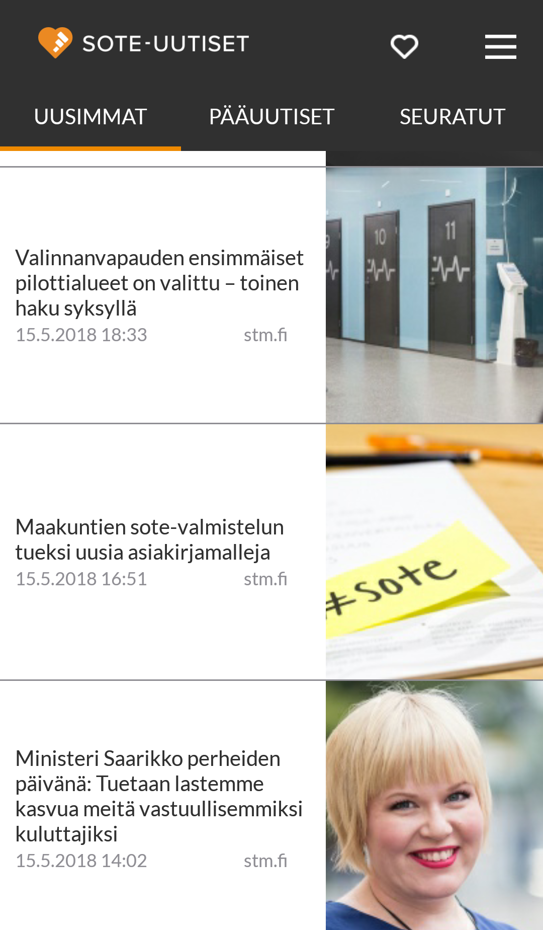 Sovellusta kehitetään niin, että jatkossa mukaan tulee STM:n hallinnonalan uutisia laajemminkin.