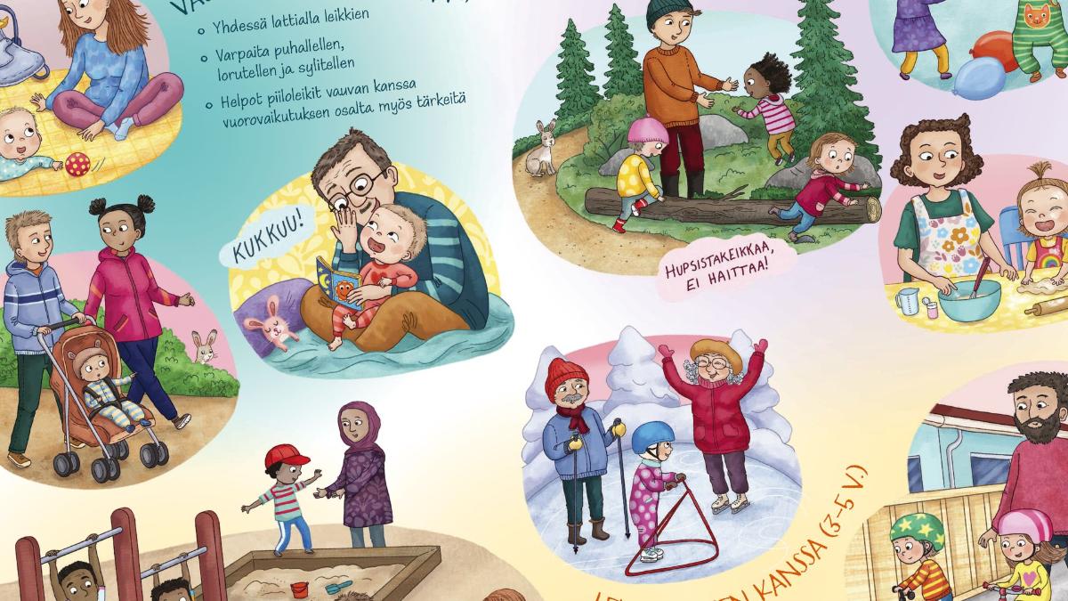 Esitteen kuvia voidaan käyttää keskustelun tukena ja perheitä voidaan ohjata myös tutustumaan oman kunnan tarjoamiin liikuntapalveluihin ja -neuvontaan.