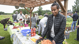 Toiminnalle on selkeää tarvetta. Itsekin Gammelbackassa asuva Bite Kanerva järjestelee Sadonkorjuujuhlan ruokapöytää ja kertoo olleensa 2-vuotiaan Jasper-poikansa kanssa mukana Perheiden puutarhan palstanhoidossa.