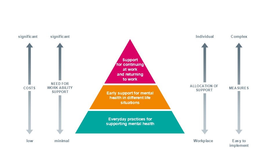 The key objective of the Mental Health at Work Programme is to shift the focus of support for mental health in working life from solving existing problems in an individual-focused way to preventing work ability problems. By taking proactive action, it is possible to avoid work ability issues and the costs arising from them.