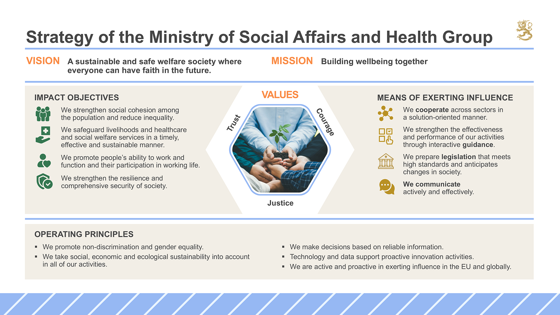 The Ministry of Social Affairs and Health updated its strategy in early 2026 to respond to changes in the operating environment. The strategy was updated in cooperation with the agencies and public bodies in the Ministry’s branch of government.