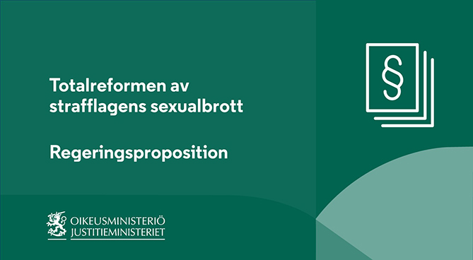 Regeringen har i dag överlämnat till riksdagen en proposition med förslag till reform av strafflagens bestämmelser om sexualbrott. Syftet med reformen är att stärka vars och ens sexuella självbestämmande och skyddet av den personliga integriteten. Samtidigt kommer den omfattande reformen att harmonisera och förtydliga bestämmelserna om sexualbrott i strafflagen. Lagförslaget baserar sig på regeringsprogrammet för statsminister Sanna Marins regering.